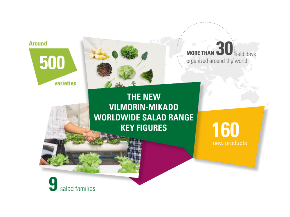 Dopo 5 anni di acquisizioni e l'introduzione di nuove specie come spinaci e baby leaf, la nuova gamma delle specie a foglia si sta espandendo "Con questo nuovo logo, vogliamo mostrare quanto sia versatile e originale la nostra gamma di specie a foglia, che offre prodotti adatti a tutti i mercati, per tutte le modalità di produzione e consumo in tutto il mondo", ha sottolineato Catherine Moulenat, Salad International Manager di Vilmorin- Mikado. Per soddisfare le esigenze del settore e tenere il passo della rapida evoluzione del mercato, Vilmorin-Mikado non ha sviluppato soltanto la sua gamma, ma ha anche rafforzato l’equipe di Ricerca, Sviluppo e Marketing. Ora, ciascuna specie è seguita da un Manager specialista del prodotto, che fornisce soluzioni specifiche a ciascun coltivatore, nei cinque continenti. La preziosa competenza nelle specie consente all’equipe Vilmorin-Mikado di comprendere le esigenze del mercato e fornire un supporto adeguato sul campo.