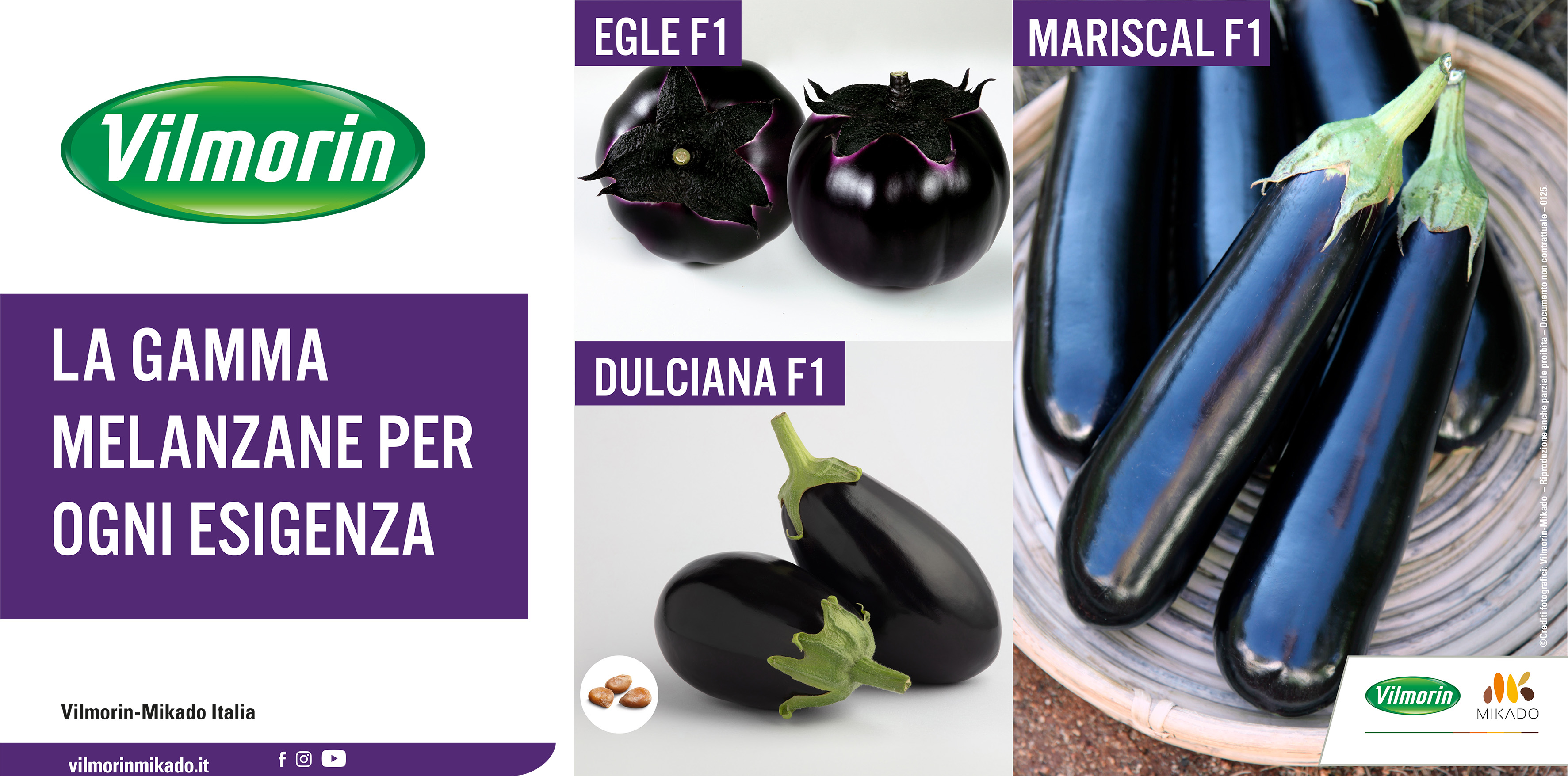 Vilmorin Mikado amplia la propria gamma varietale per la specie melanzana e si conferma punto di riferimento per i produttori del centro-sud Italia, con varietà performanti per tutte le principali tipologie (tonda-ovale nera, violetta, lunga), che garantiscono ottimi risultati in campo in termini di resa e qualità.