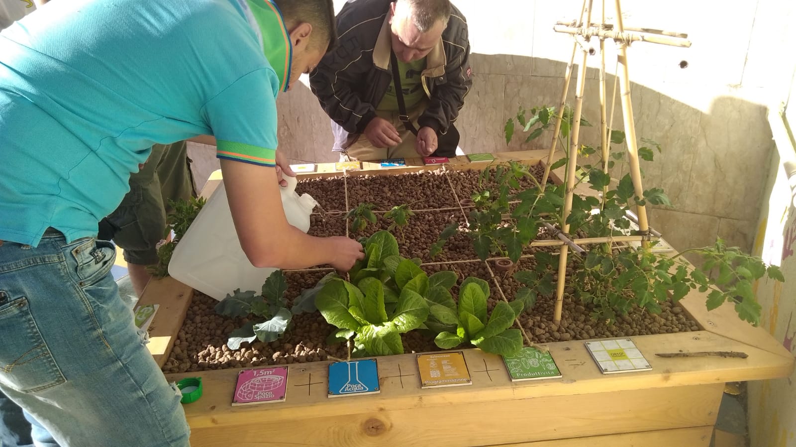 I ragazzi della fattoria Capovolti e della casa alloggio in gruppi di 4-5 costruiscono i propri Orti² per poi occuparsi interamente della loro gestione. Possono così comprendere l’importanza della collaborazione e dell’aiuto reciproco ed imparano inoltre a prendersi cura delle piante in ambiente contenuto.