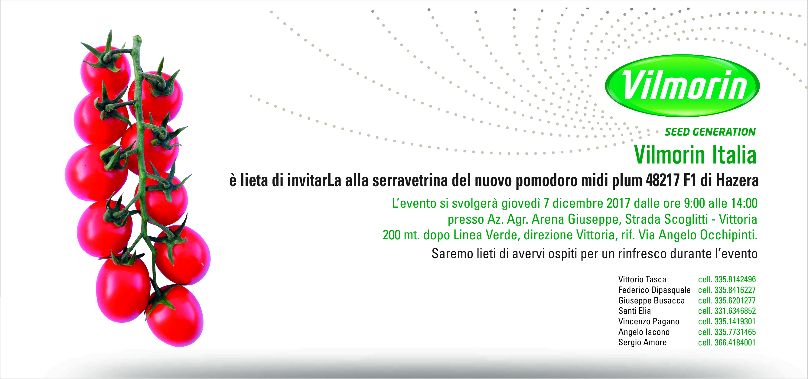 Giovedì 7 dicembre 2017 si svolgerà l'open-day Vilmorin dedicato al nuovo pomodoro midi plum 48217 F1 di Hazera,